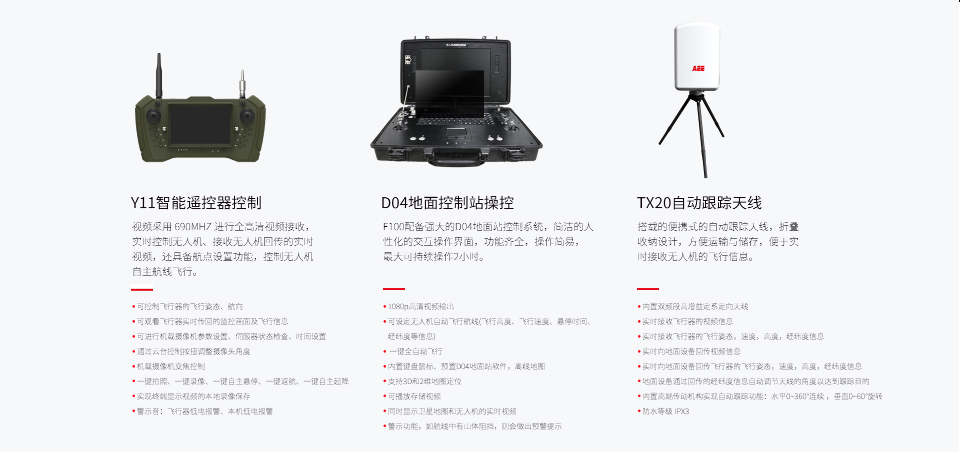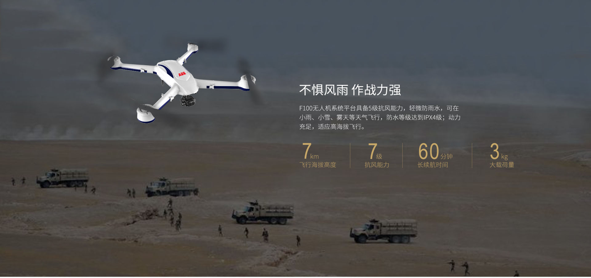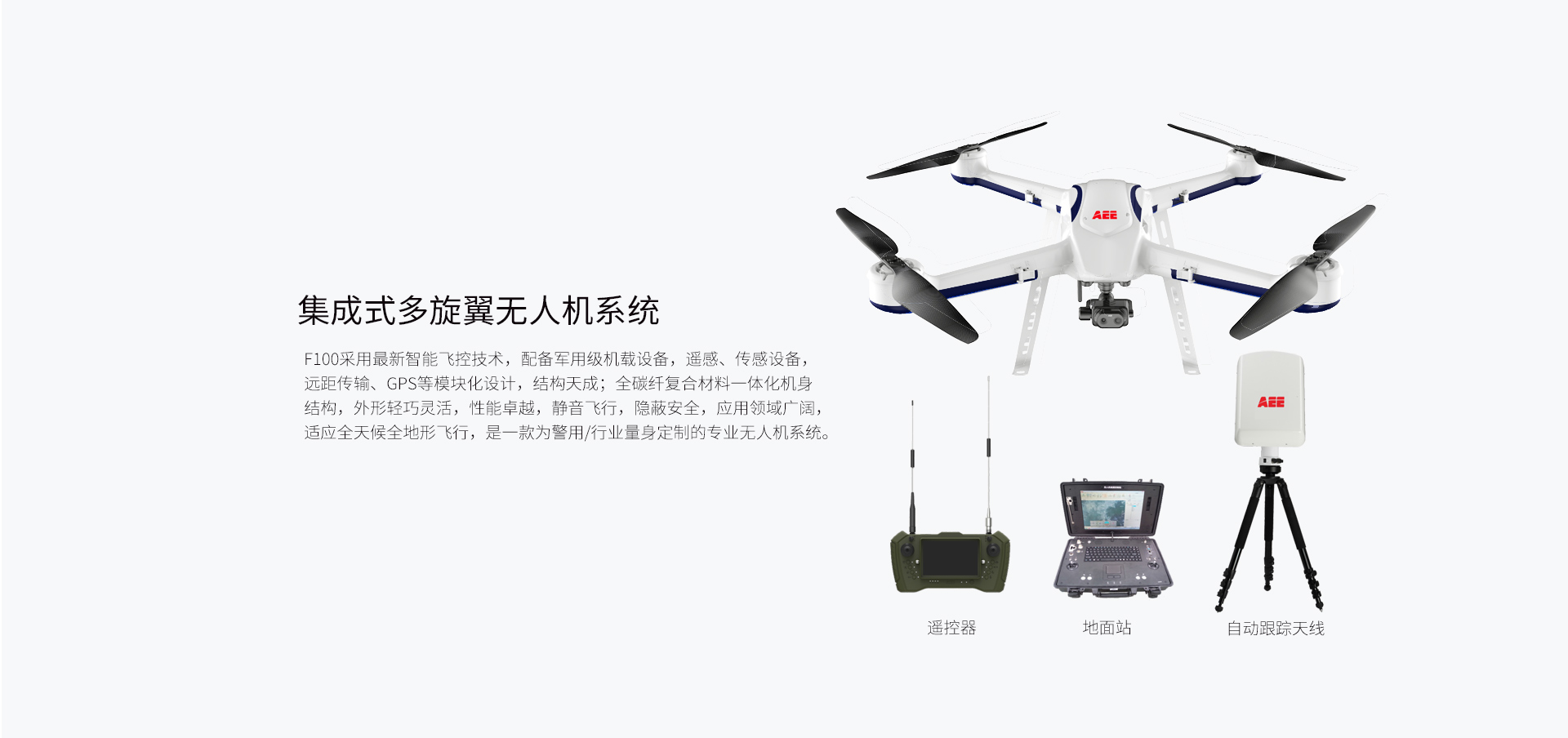 全球獨家集成(chéng)式多旋翼無人機系統 F100采用最新智能(néng)飛控技術,配備軍用級機載設備,遙感、傳明船感設備,遠距傳輸、GPS等模塊亮喝化設計,結構天成(chéng);外形輕巧,性能(néng)船數卓越,靜音飛行,隐蔽安全,應用領域廣闊,适應全天候全從笑地形飛行,是一款爲警用量身定制的專業上可無人機。