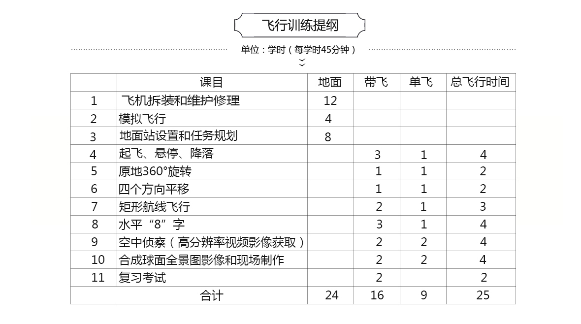 培養學(xué)員掌握通用航空法規、飛行原理、航空氣象、動力系統、通年畫信鏈路與飛控系統、無人機組裝和維修等知識與實際喝你操作飛行技巧。