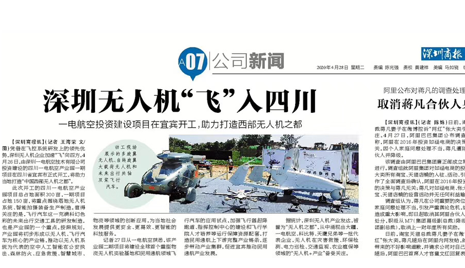 憑借在飛控系統研發(fā)上的領先優勢,深圳無人機企業加速“飛”向(xià書議ng)四方。4月26日,由深圳一電航空産業園一期項目在四川省宜賓市正式開(k關師āi)工,將(jiāng)助力當地打造“中國(guó身廠)西部無人機之都(dōu)”